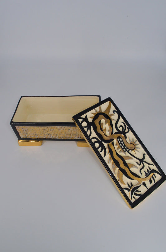 Heidi Schoop Ceramic Lidded Box - Handmade 1940s 1950s - Vanity Box - Small Box - Dragon