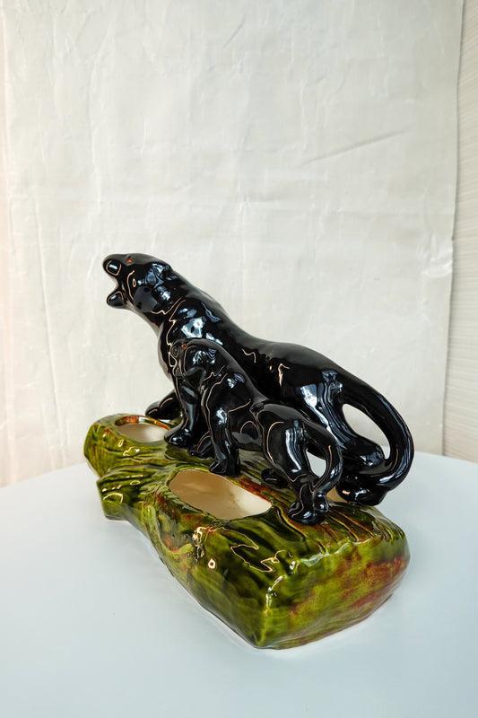 50's Ceramic Panther Planter - MCM Panther Vessel - Handmade in Texas - Vintage Midcentury Decor