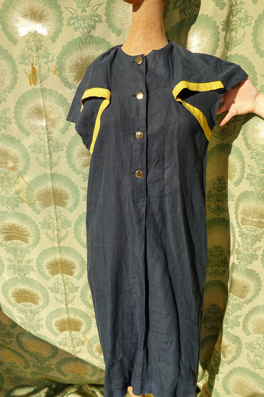 70's Italian Linen Dress - Cap Sleeve Button Up Dress - Medium/Large