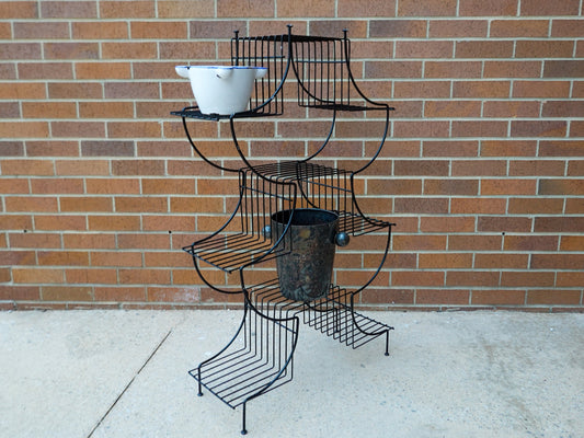 Vintage Pagoda Plant Stand - Coated Wire Multi-Level MCM Plant Stand - Black Metal - 9 Platforms