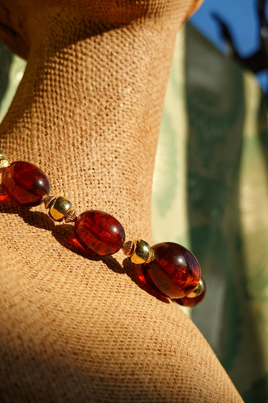 50's - 60's Amber Lucite Bead Adjustable Choker Necklace - Vintage Chunky Acrylic and Gold Tone Spacer Beads - Trifari