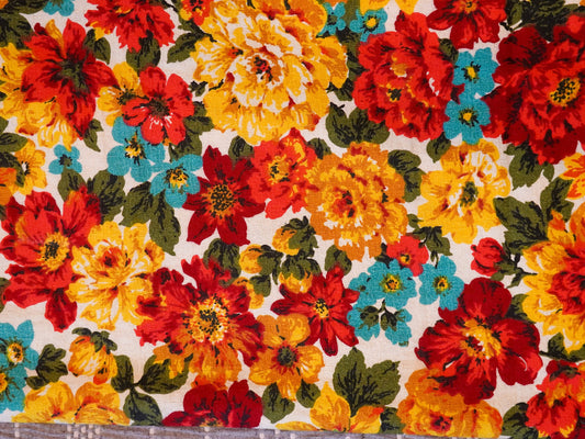 50's Floral Screen Printed Fabric Remnant - 5th Avenue Designs Inc. - Vintage Decorator Fabric Bright Florals - Free Shipping