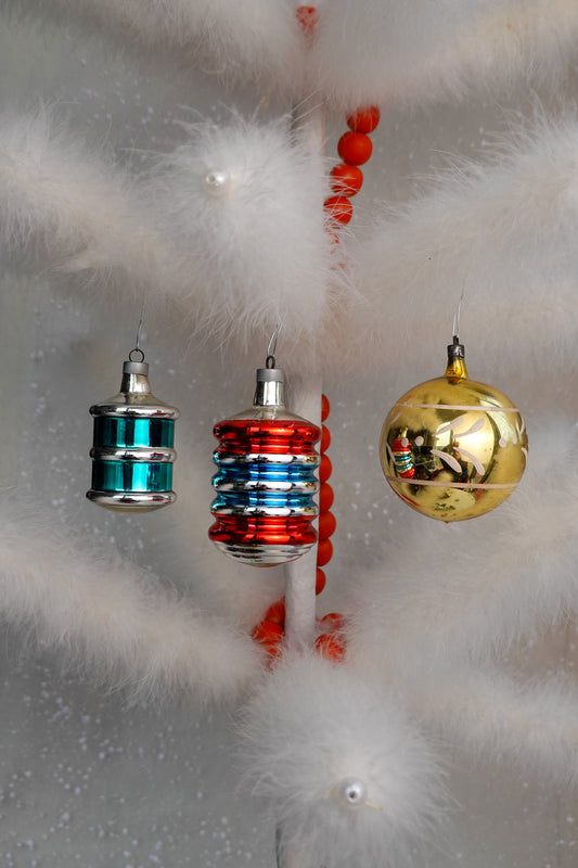 40's Christmas Ornaments - Set of 8 Assorted Vintage Shiny Brite & Glasscraft Xmas Ornaments - Hand Painted Glass, Lantern, Pinecone