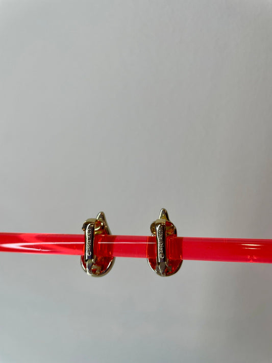 80's Christian Dior Gold, Enamel, Rhinestone Earrings - Vintage Dior Jewelry