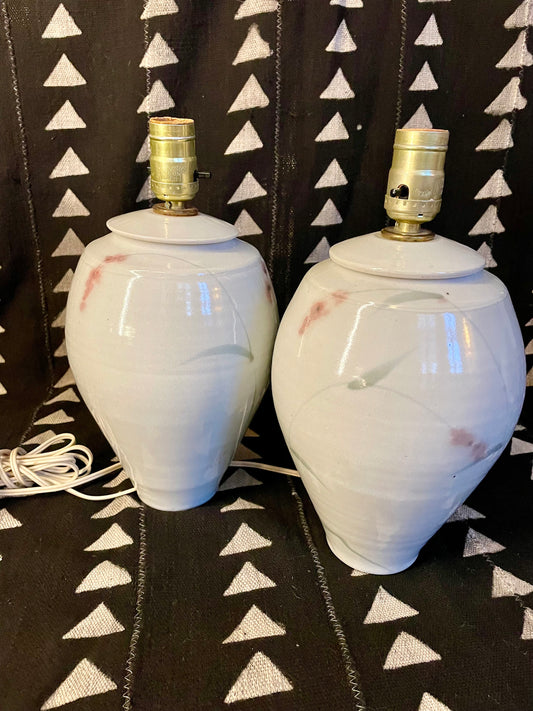 80's Cherry Blossom Lamps - Ceramic - Vintage Ginger Jar Lamp Hand Painted - Artisan Made
