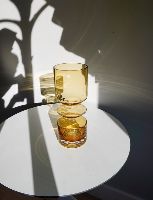 70's Riihimaen Lasi Oy Finland Vase - Hooped Glass Vase - Tall Amber Glass Vase