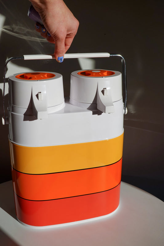 70's Twin Airpot - Made in Japan by Interpur - Vintage Twin Thermos - NOS Original Box, Packaging, Instructions - Atomic Design Kitchen