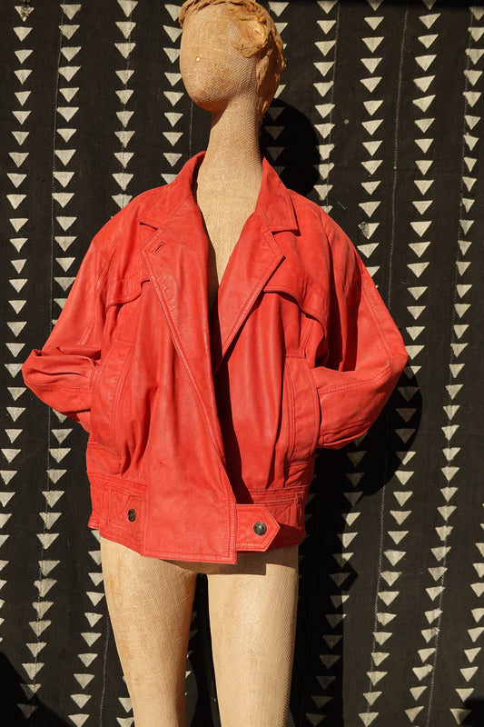 80's Leather Jacket - Dolman Sleeve Biker Jacket - Vintage Red Moto Jacket - G-III Global Identity Leather - Size Large