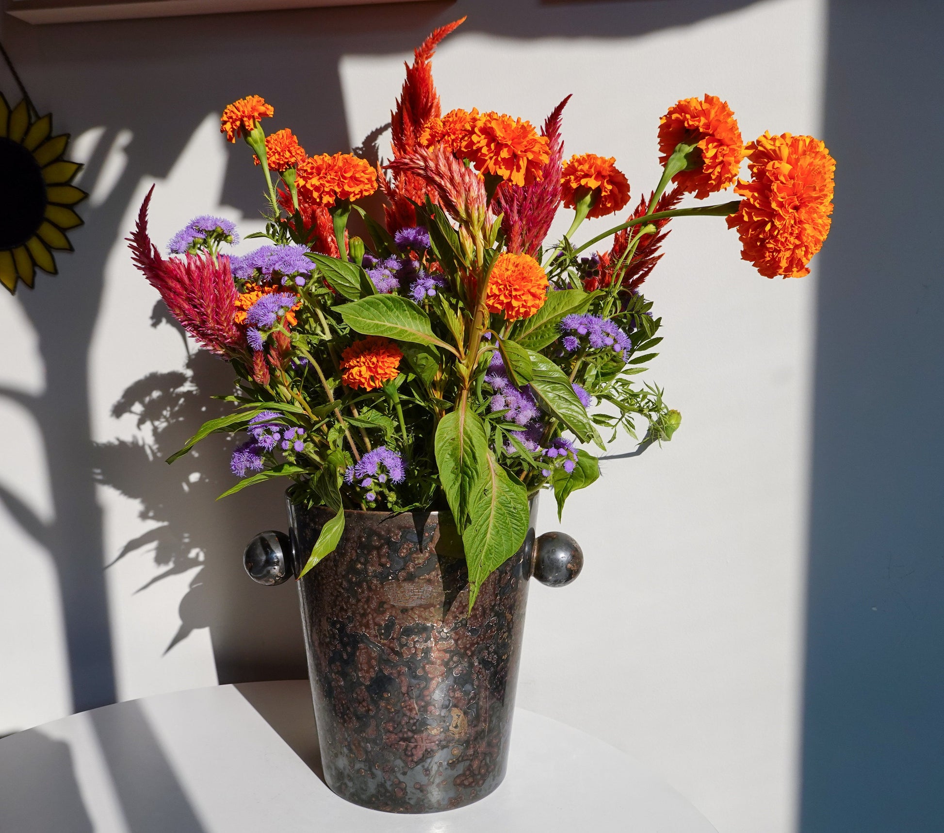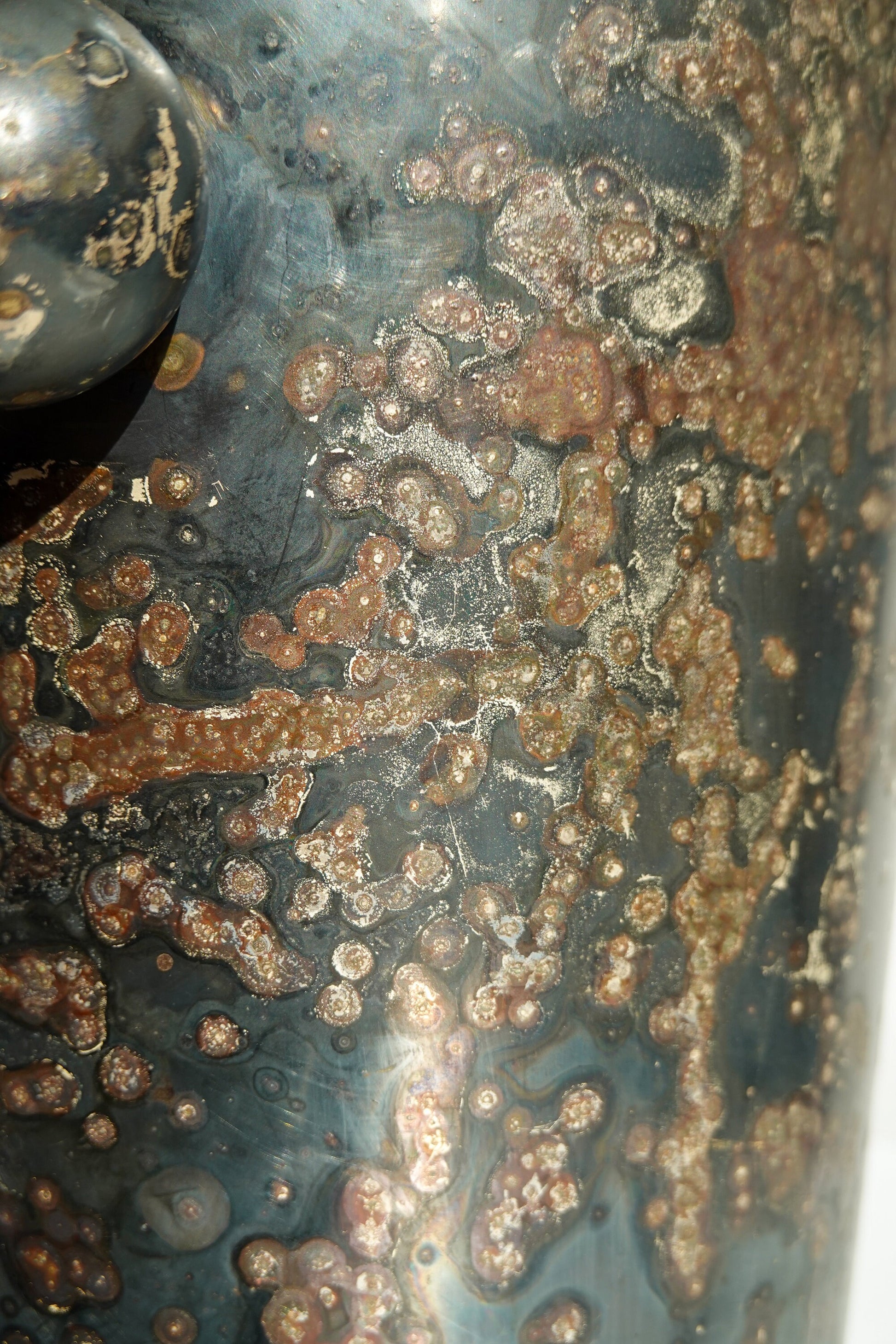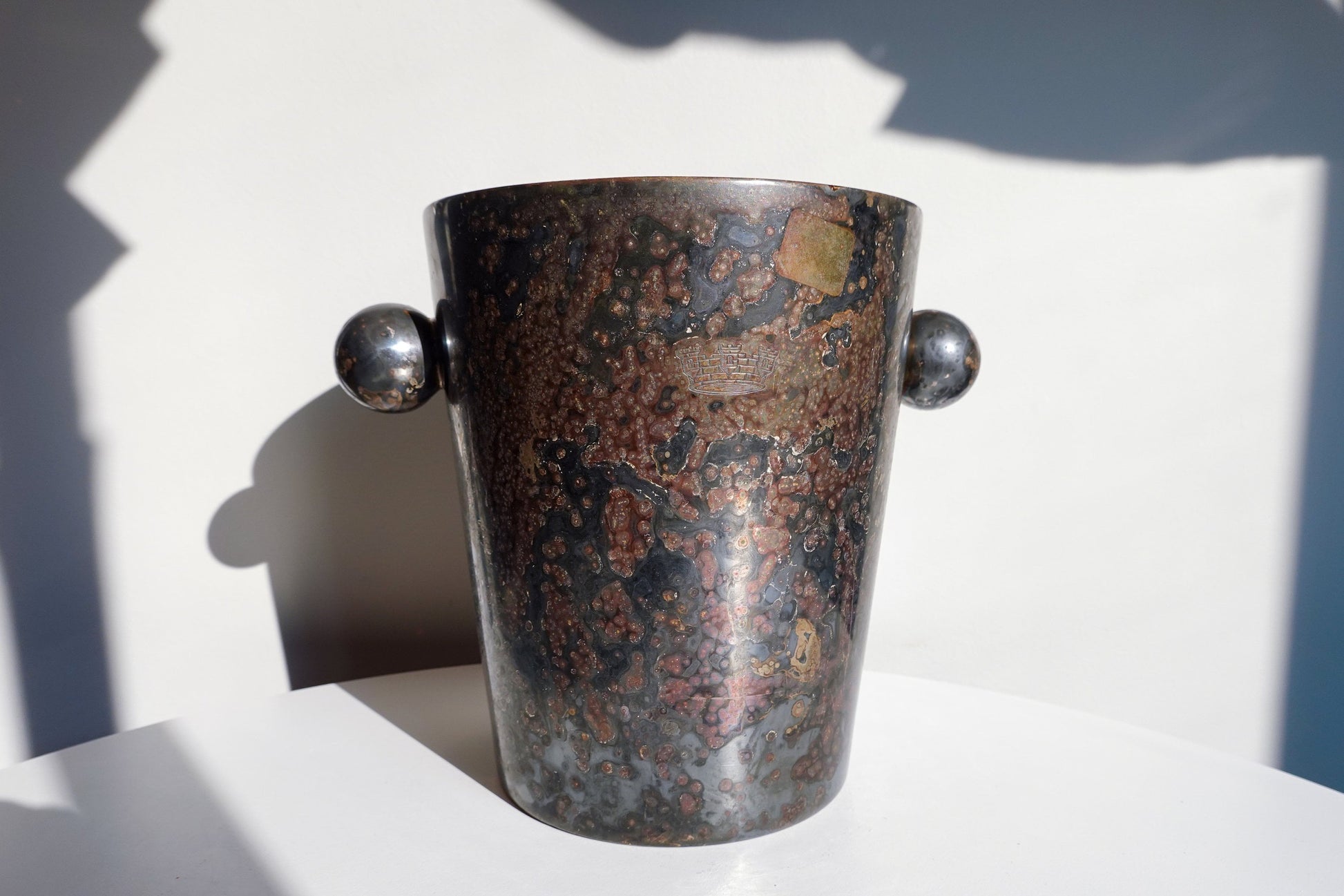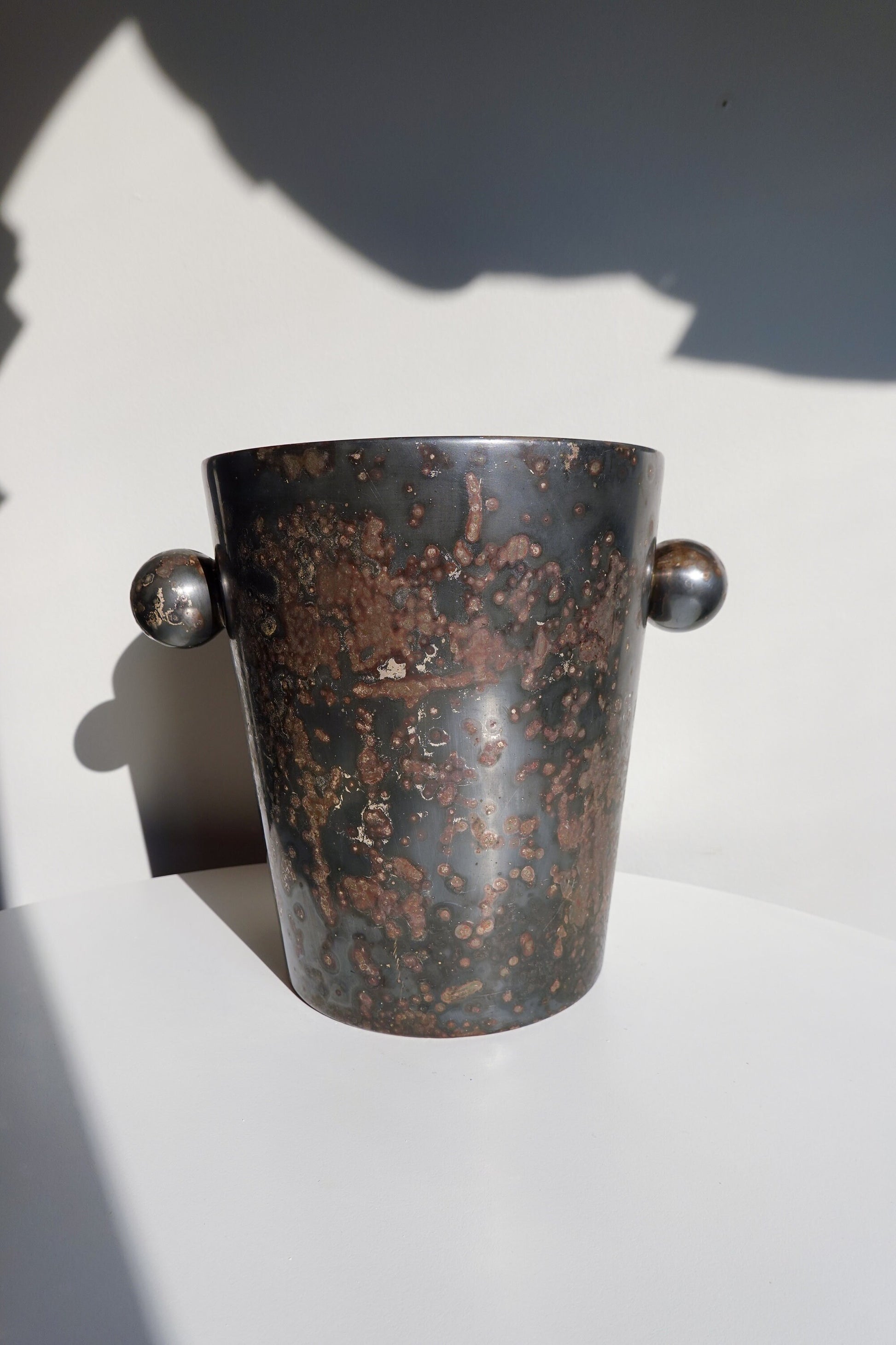 Truly, authentic vintage 1920's, or earlier. A prelude to the ice buckets and planters seen in contemporary decor shops, like "Coming Soon", this piece is entirely silver-plated. Featuring perfectly round spheres on either side and a slight taper, along with *stunning* patina. The patina has to be the most interesting I've ever seen, so I left the trippy pattern that it created in-tact. This was made by in Germany by Gebr Hepp (Gebrder in German means brothers, Gebr is an abbreviation), in the early 1900's.