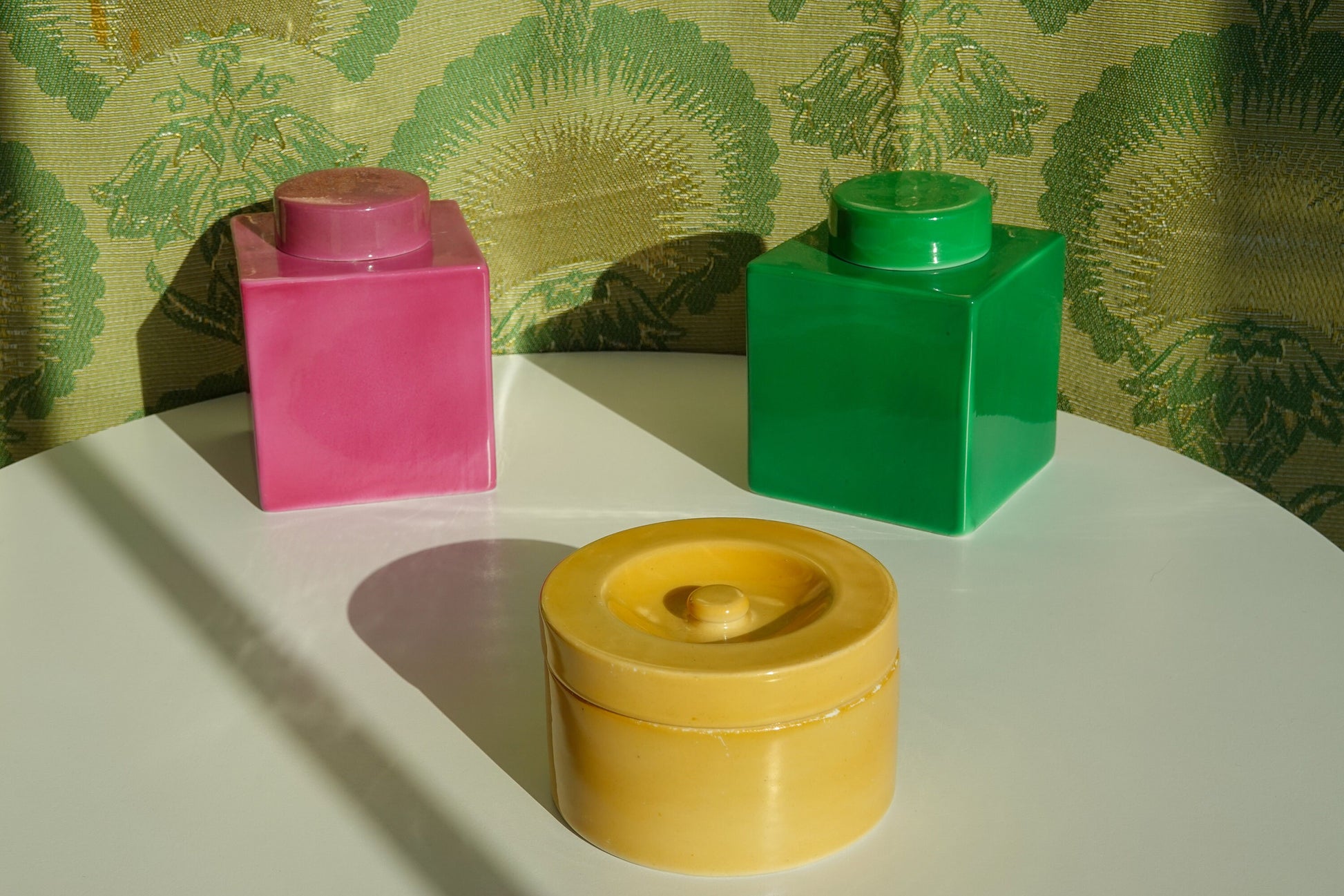 20's Geometric Vessels - Art Deco - Avco Vitrified China - Apothecary Jars - Vanity Jar, Boudoir
