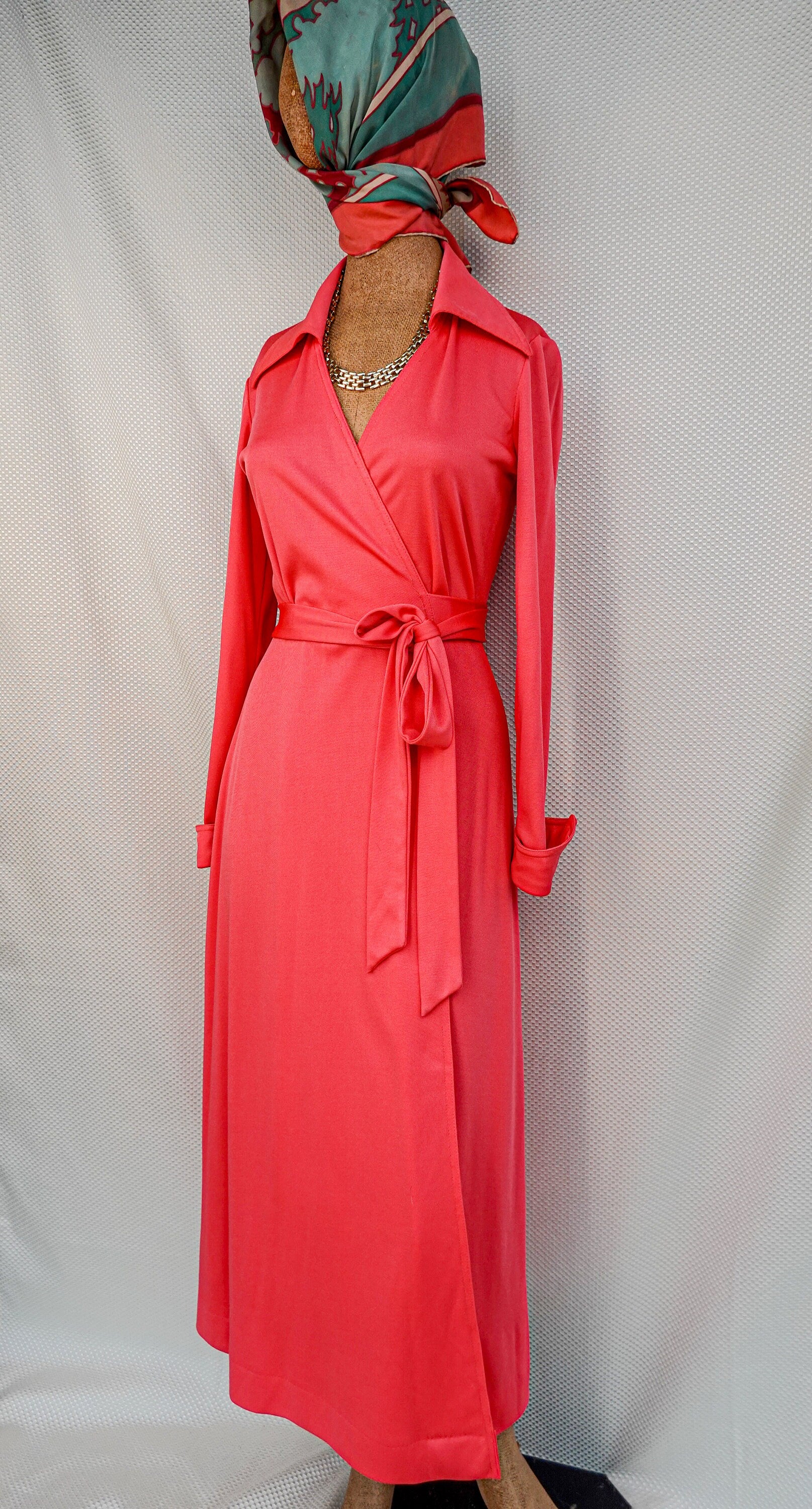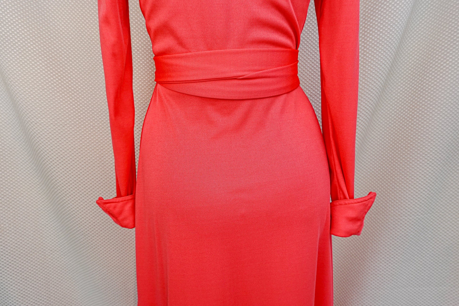 70's Wrap Dress - Vintage Neon Pink Long Sleeve Wrap Dress - Parade New York - Super Flattering - Small