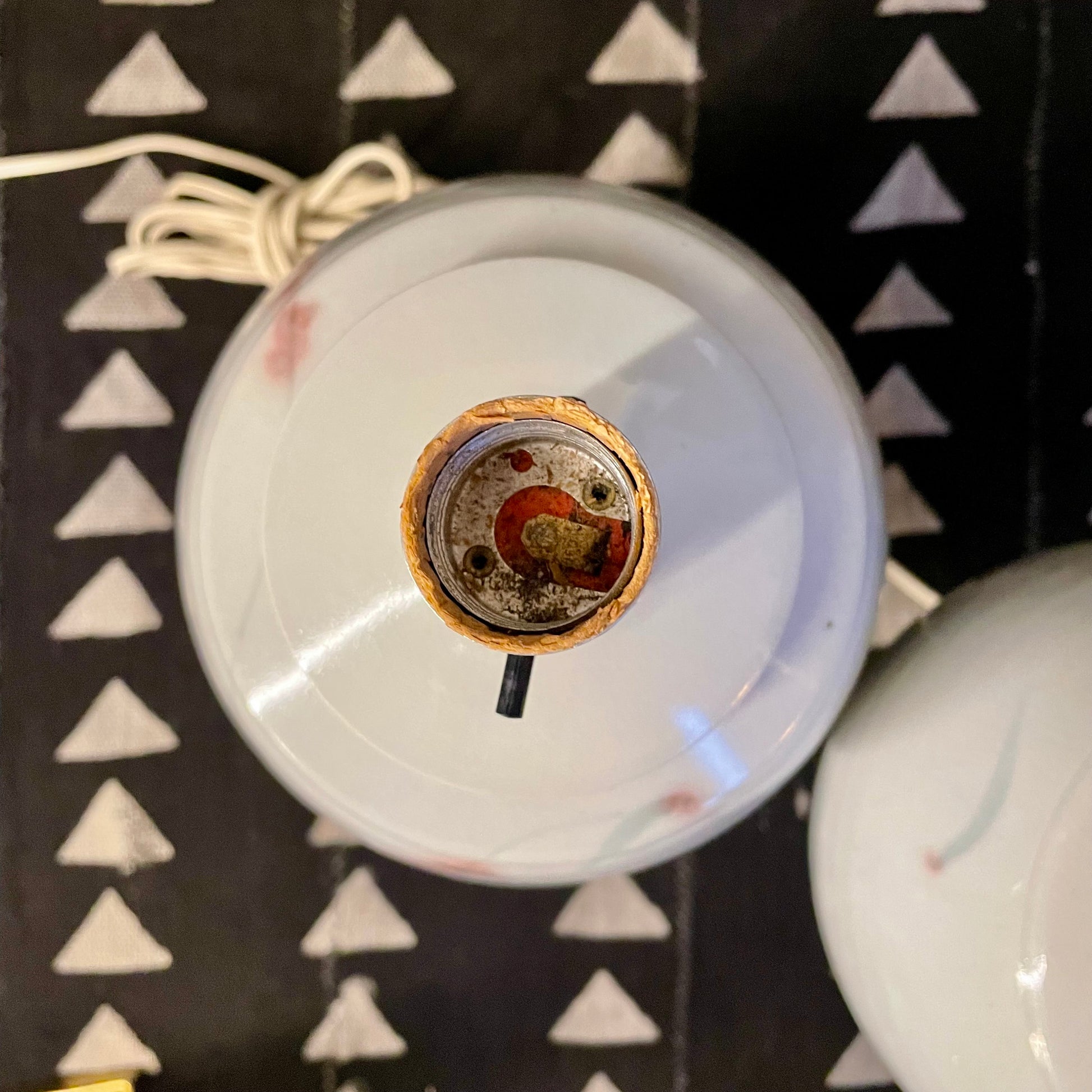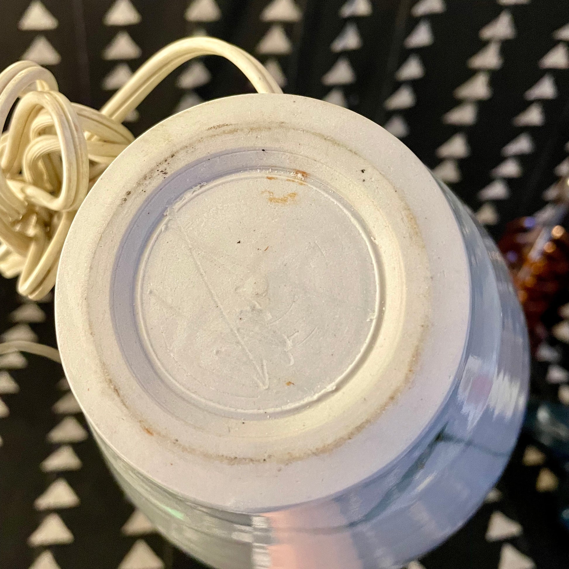 Incredible minimalist ceramic lamps, from the 1980's. Solid Asian influence, but I cannot verify the country of origin. Light and airy, hand-painted and glazed, artisan made.