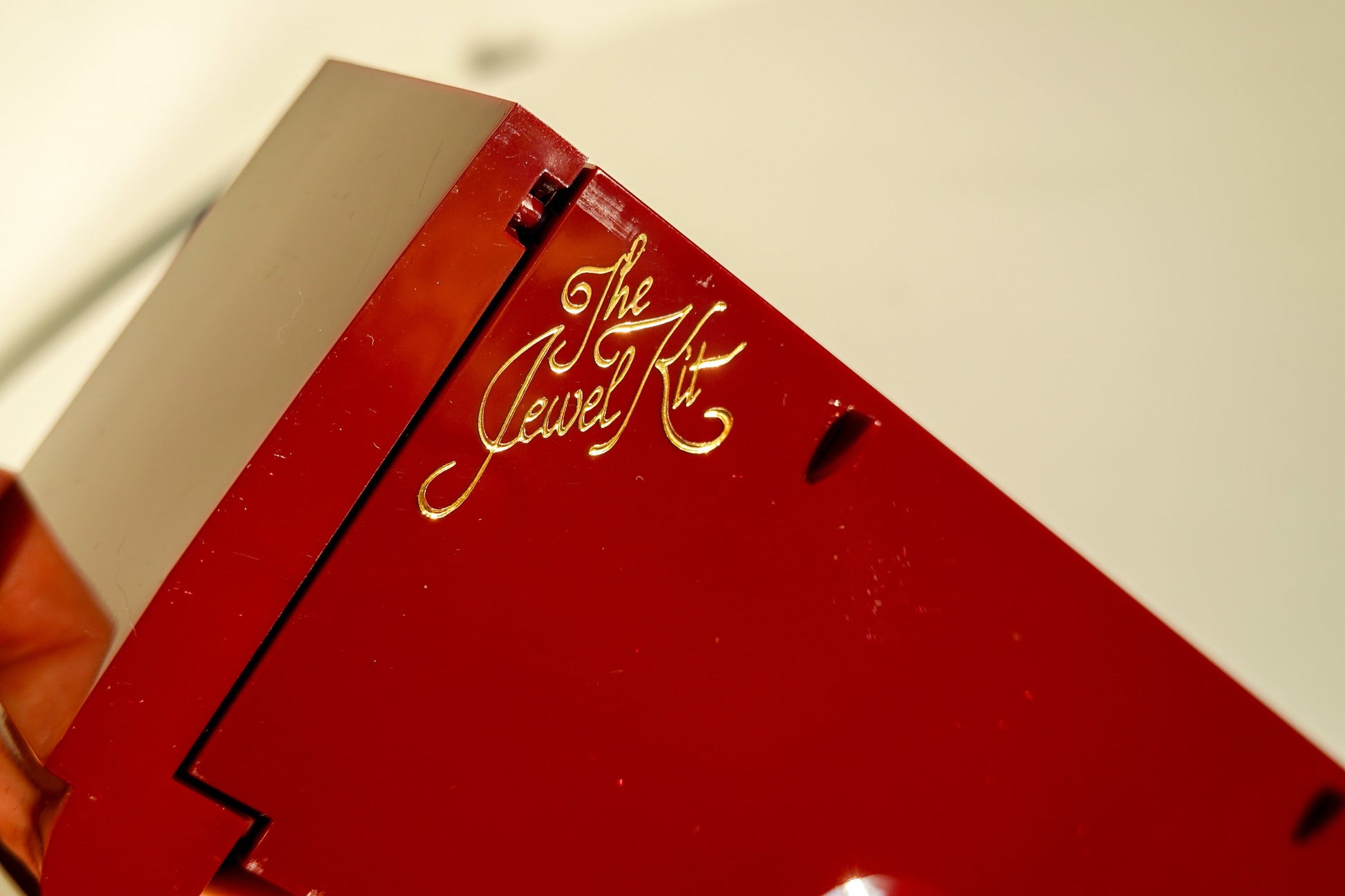Makers Mark: Right edge in gold lettering, "The Jewel Kit". On bottom, raised lettering, "The Jewel Kit is Proudly Made in USA by Ingenious Designs Inc Patented Worldwide".