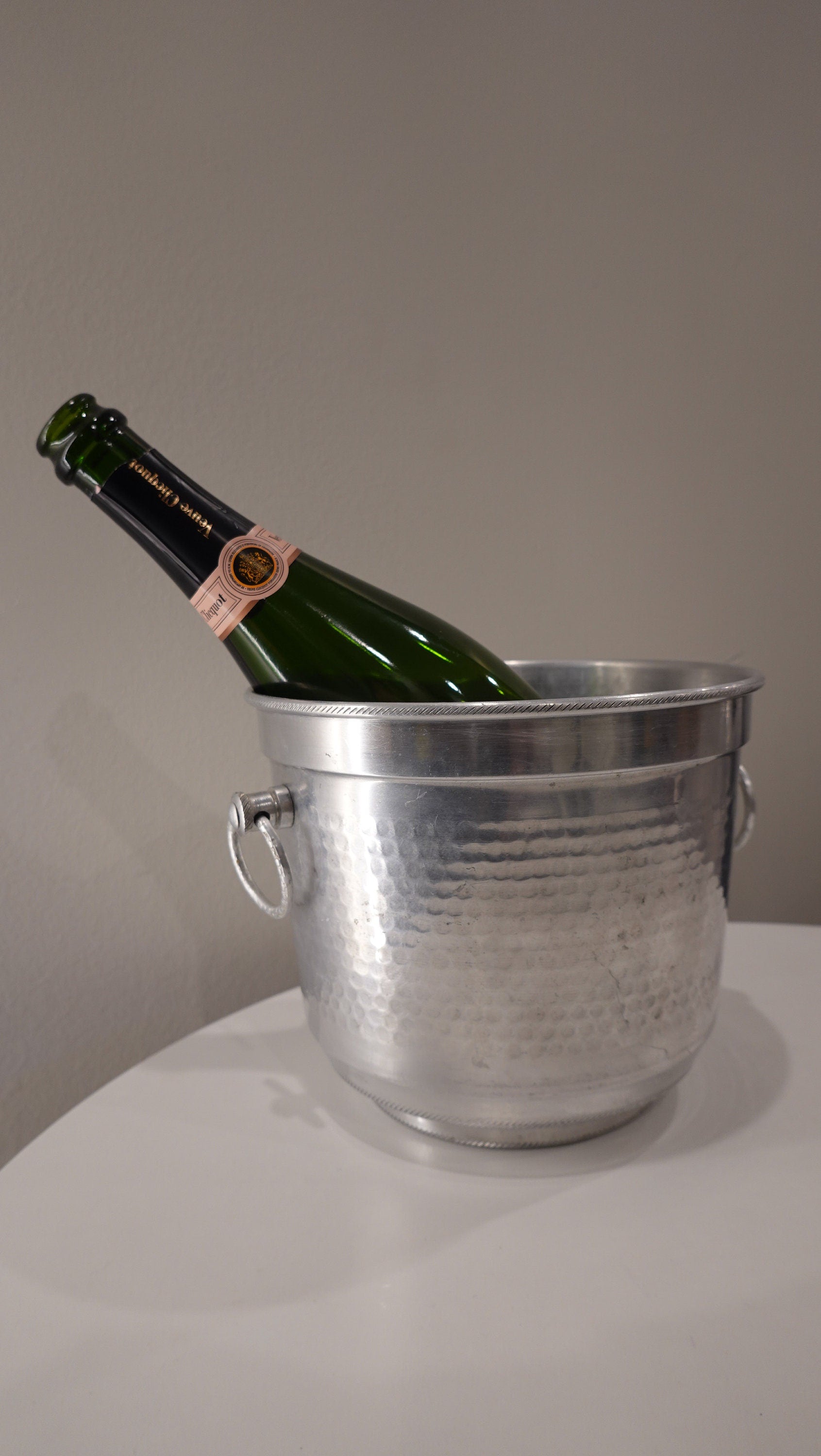 Aluminum Ice Bucket - Made in Italy - Hammered Metal Planter - Vintage Mid-Century Modern