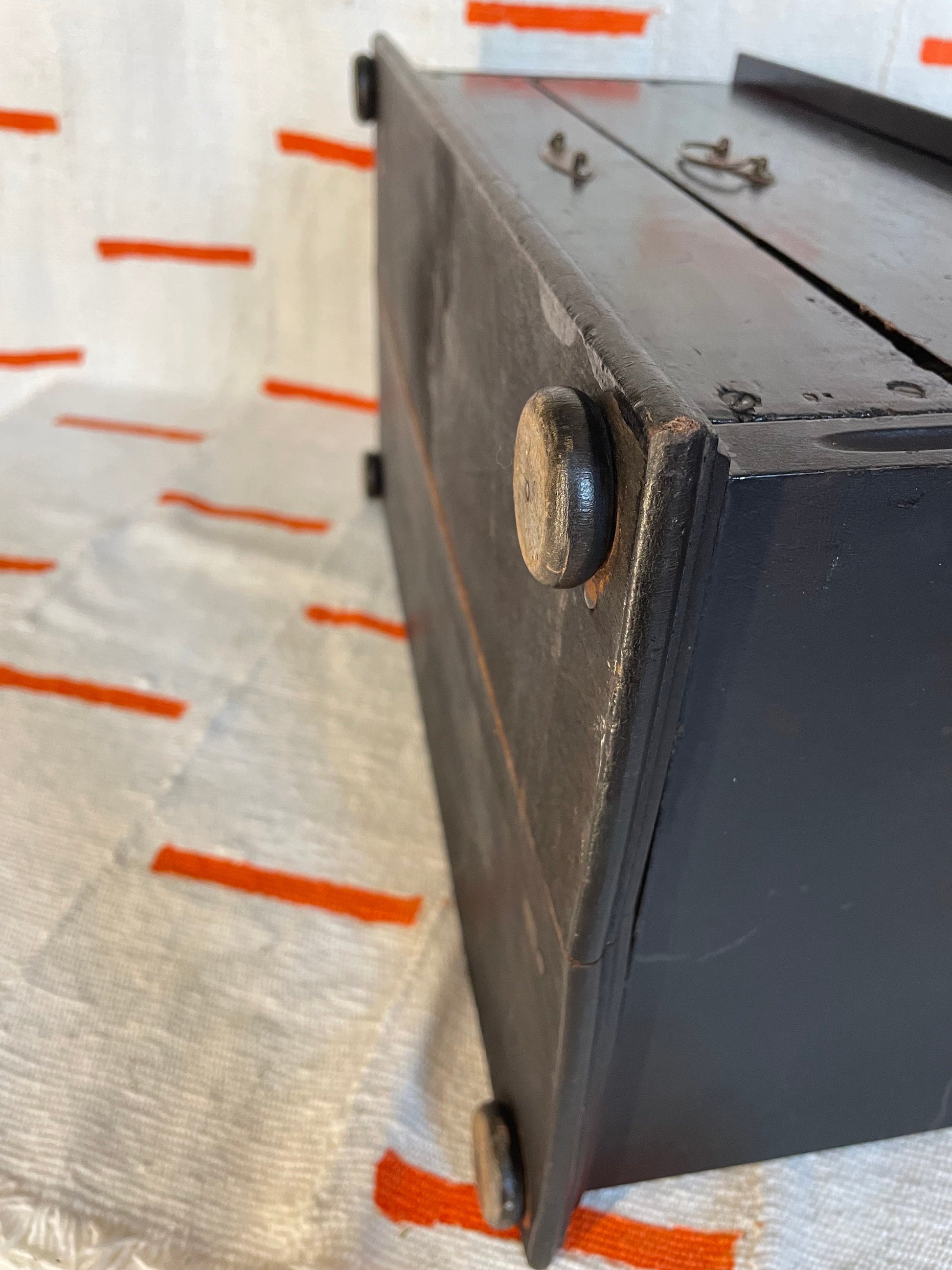 Free shipping! Beautifully made wooden, painted small chest with a lift top and two drawers. This was a working piece in its heyday, its withstood the rest of time and is a classic.