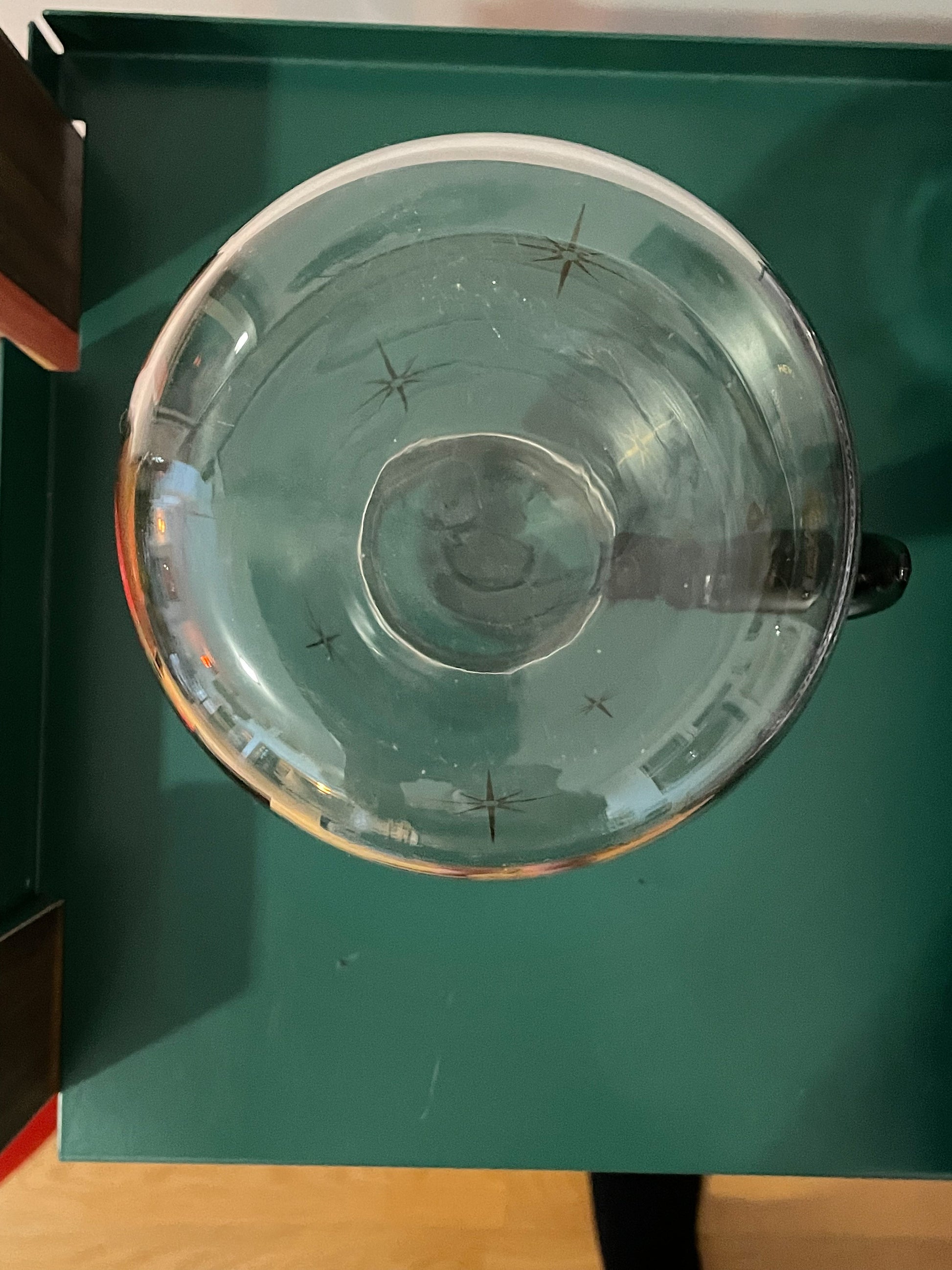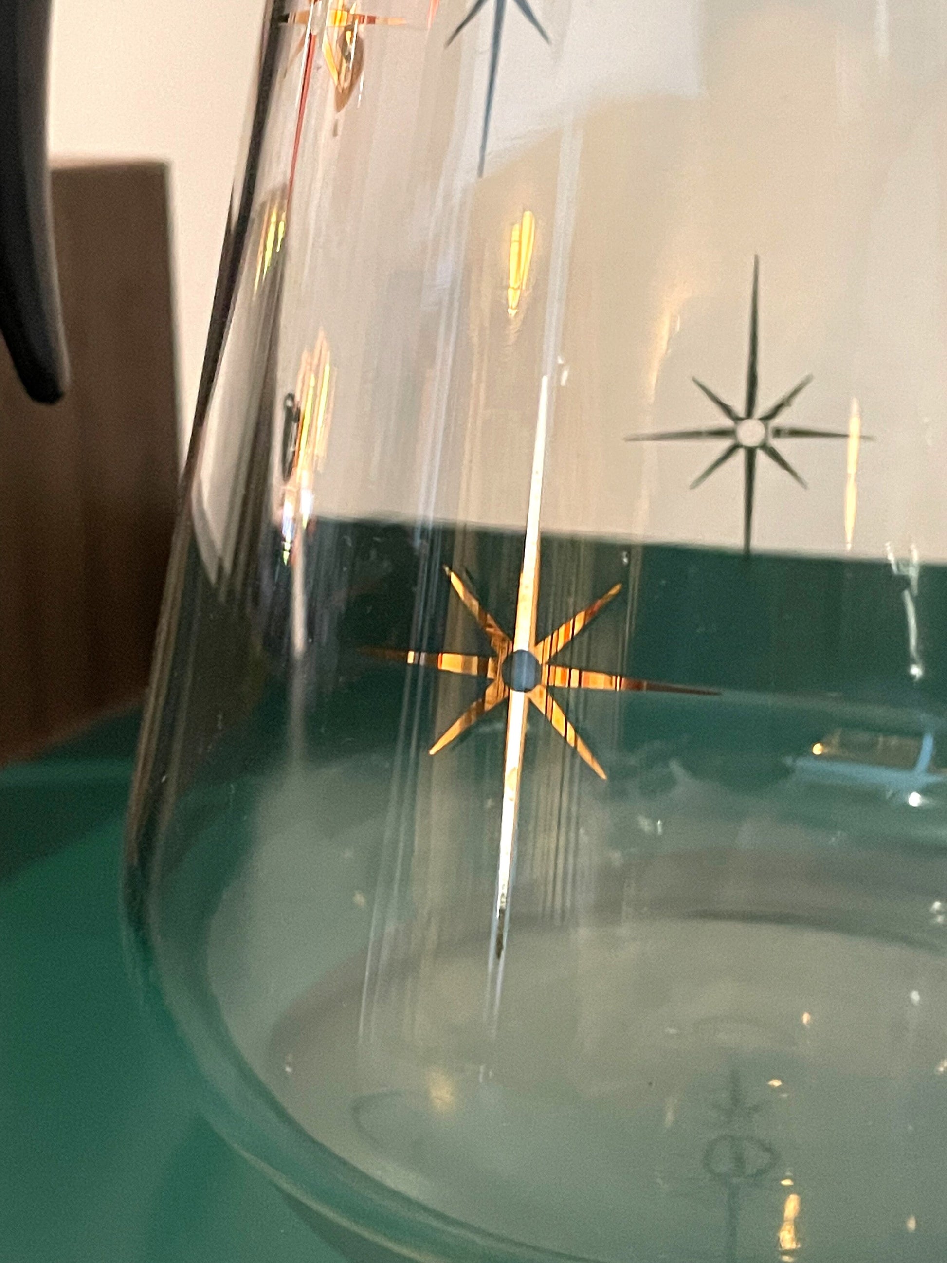Atomic Starburst Carafe by Corning - Gold Tone Details - Heat Proof Glass