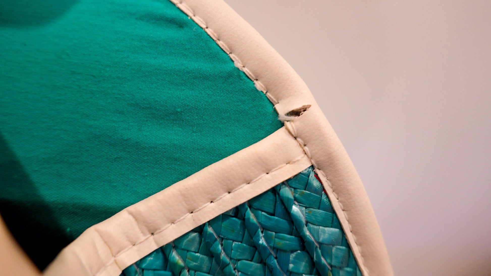 Absolutely spectacular! The raffia is completely in tact, there are no frays anywhere. The leather is barely worn. Two things to note: a 1cm tear in the interior edge of the bag (photo included), and one 1/2cm pink stain on the leather trim, barely visible (DM for photo).