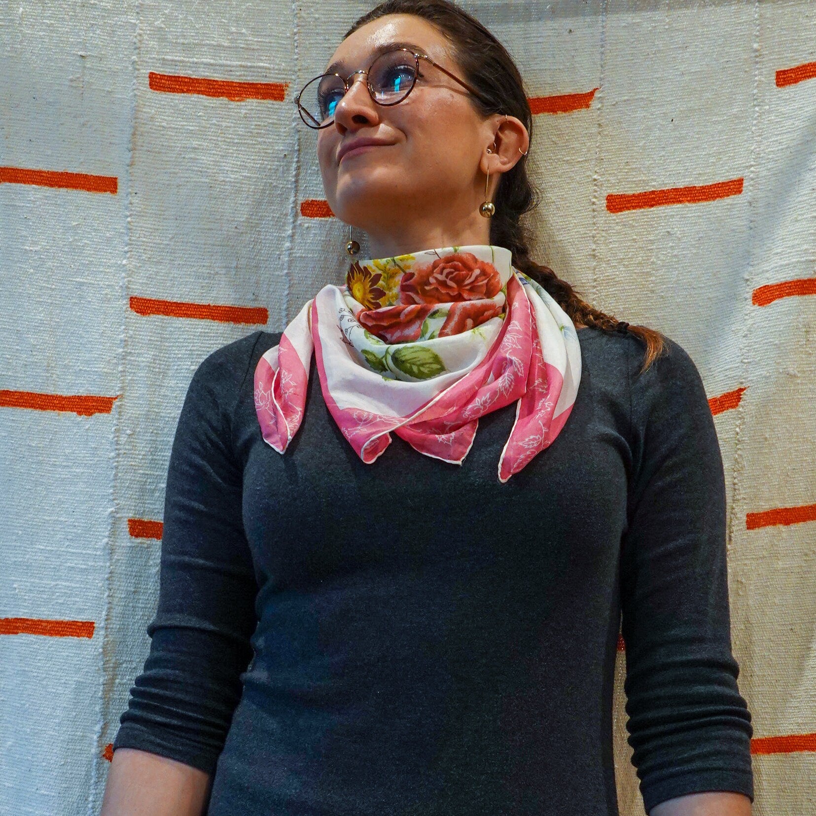 Delicate Floral Silk Scarf - 1940s Vintage Silk
