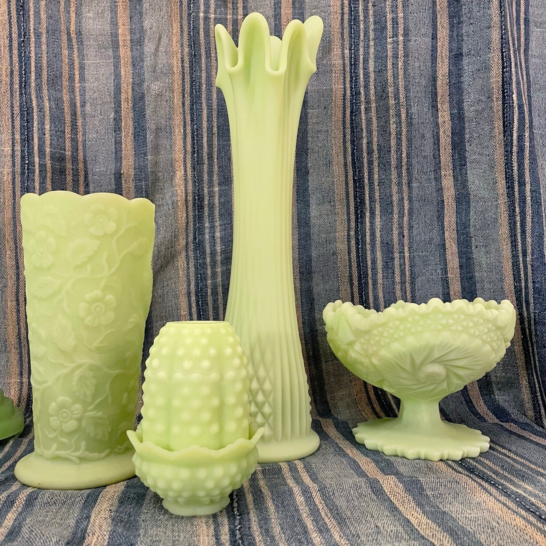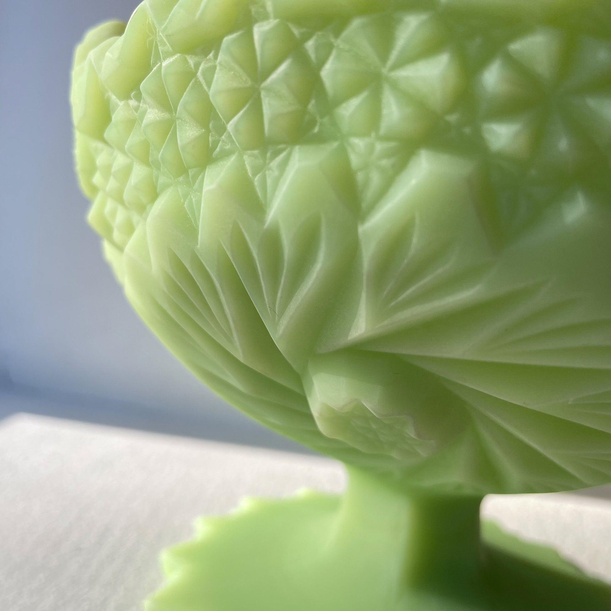 Fenton Compote - Vaseline Satin Glass - Custard Glass - Glows