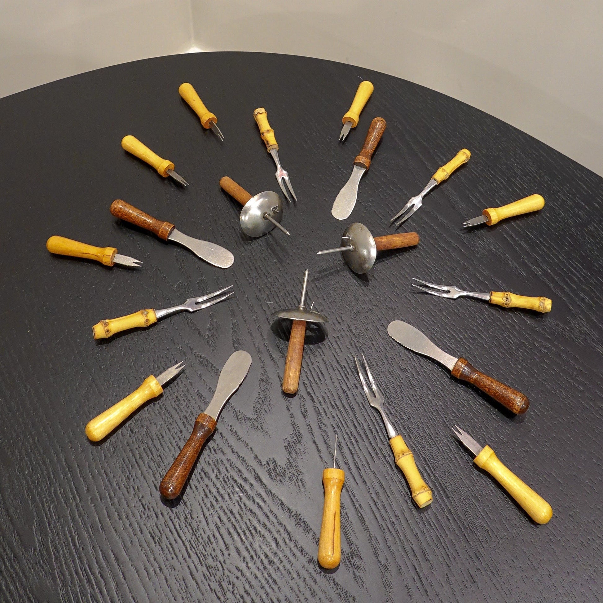 Hors d'oeuvre Set - Skewers, Forks, Olive Picks, Cheese Knives - Vintage Appetizer Utensils - Wood, Bamboo & Stainless Steel Japanese CLEAN