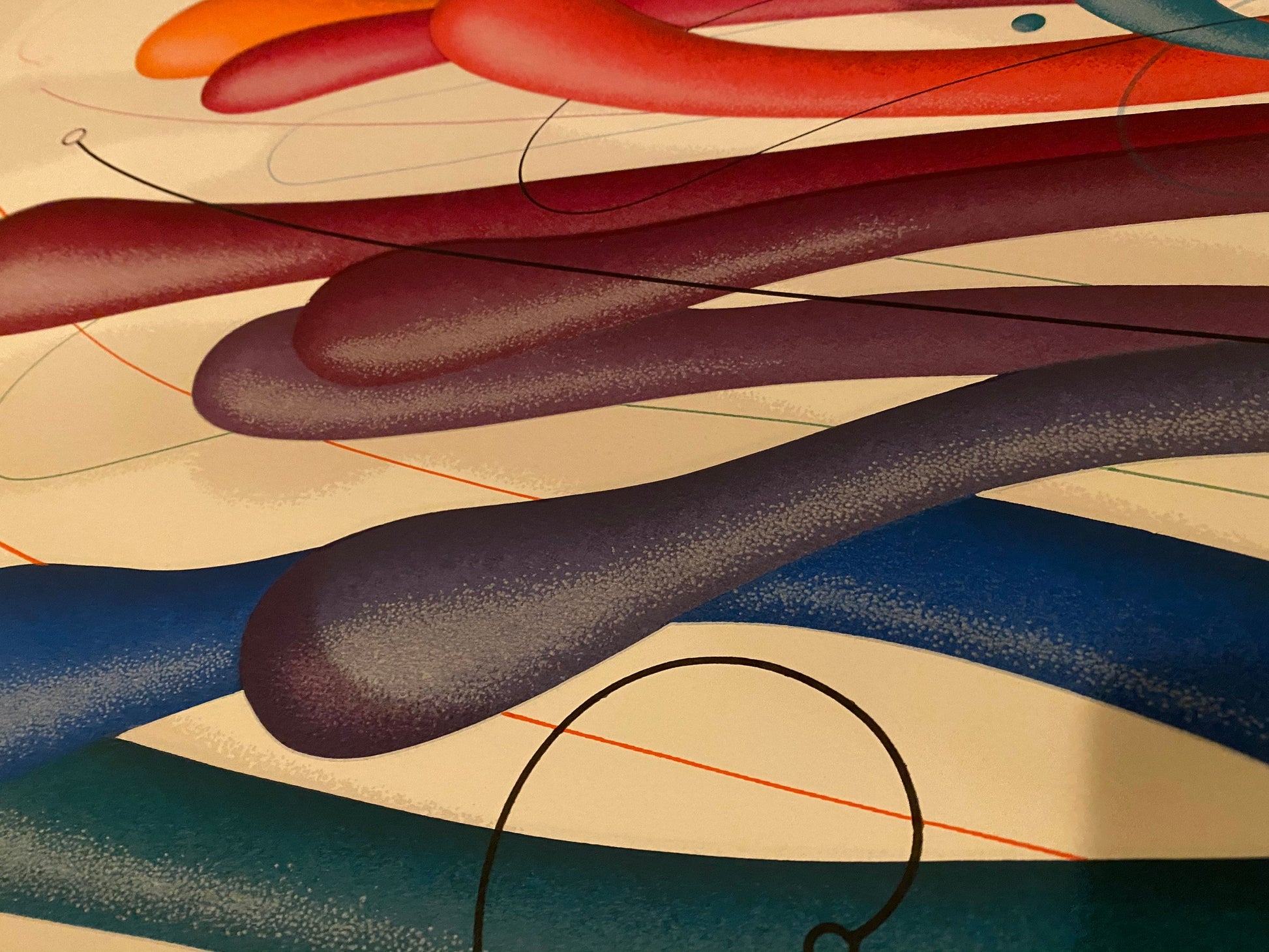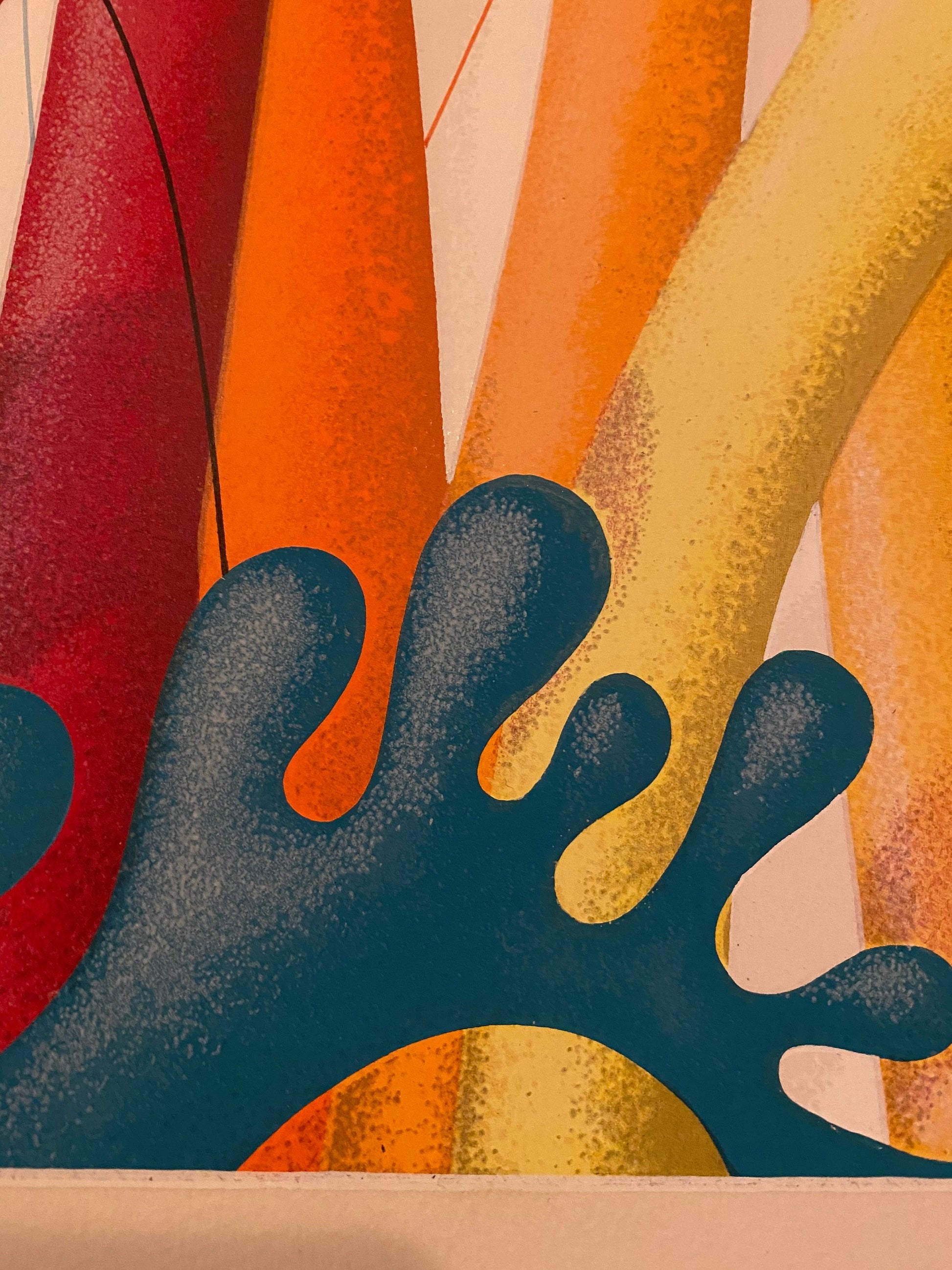 Playful, interesting and rainbow-colored print by Soviet/American artist Yankel Ginzburg (born 1945). Great way to add color to your space, the details on this piece are fascinating! A bit of pointillism adds depth, as you can see in the detailed pictures.