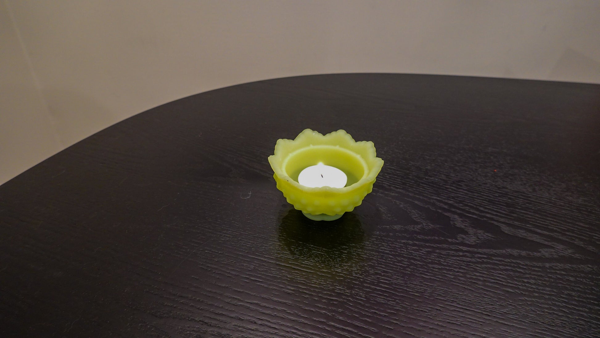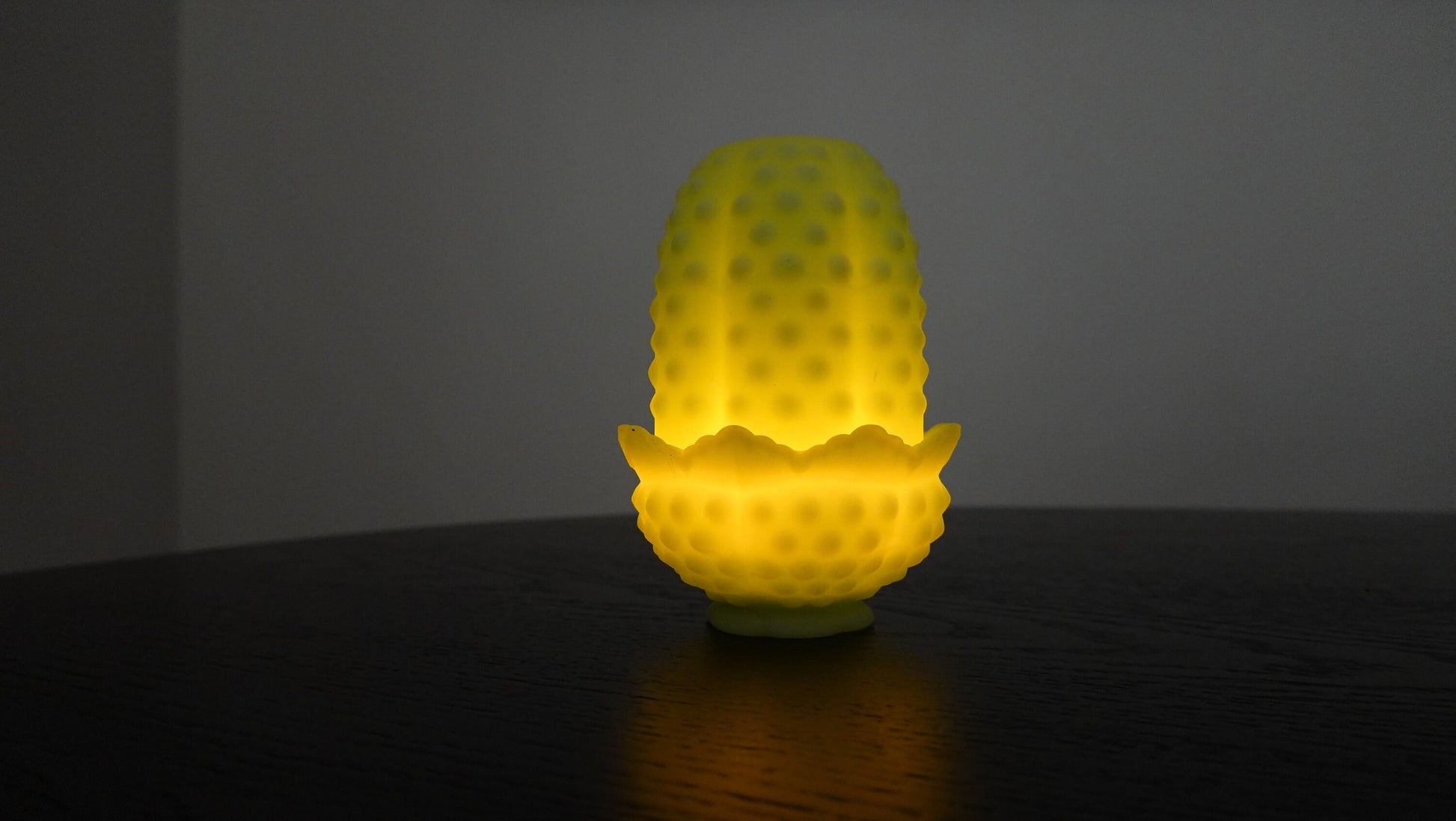 Tea Light - Fenton Hobnail Satin Vaseline Glass Fairy Lamp - Glows under Blacklight - 1974