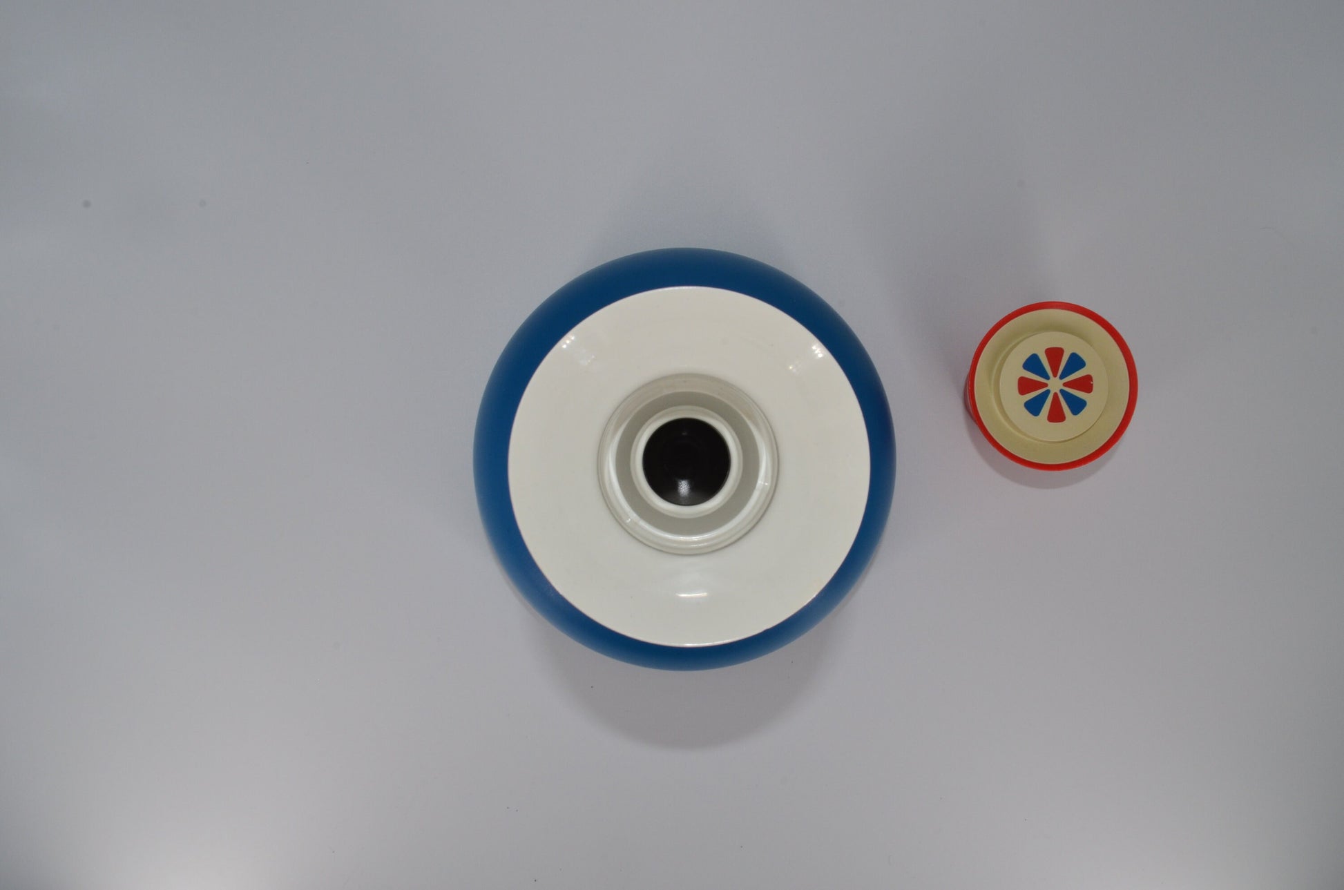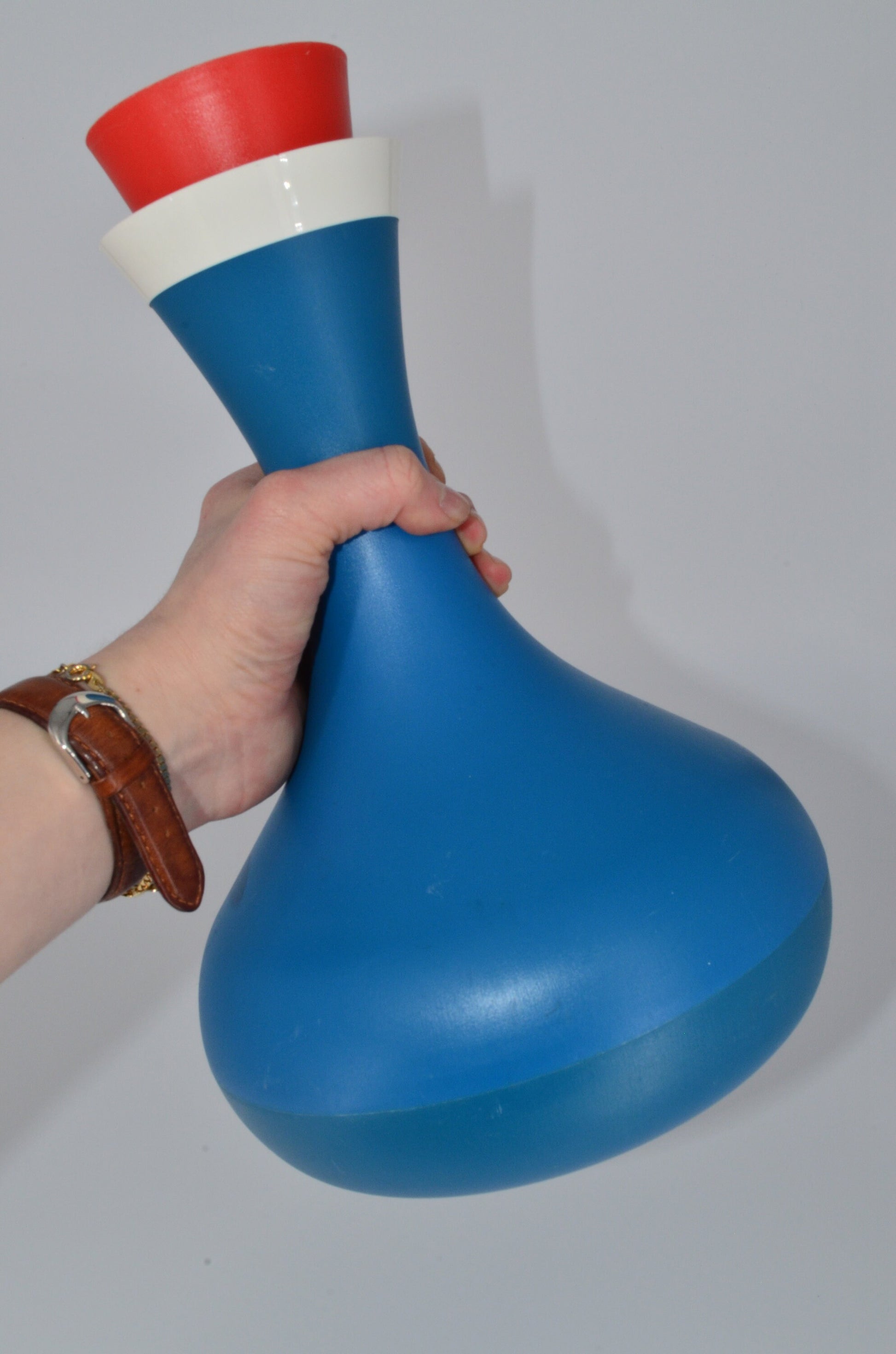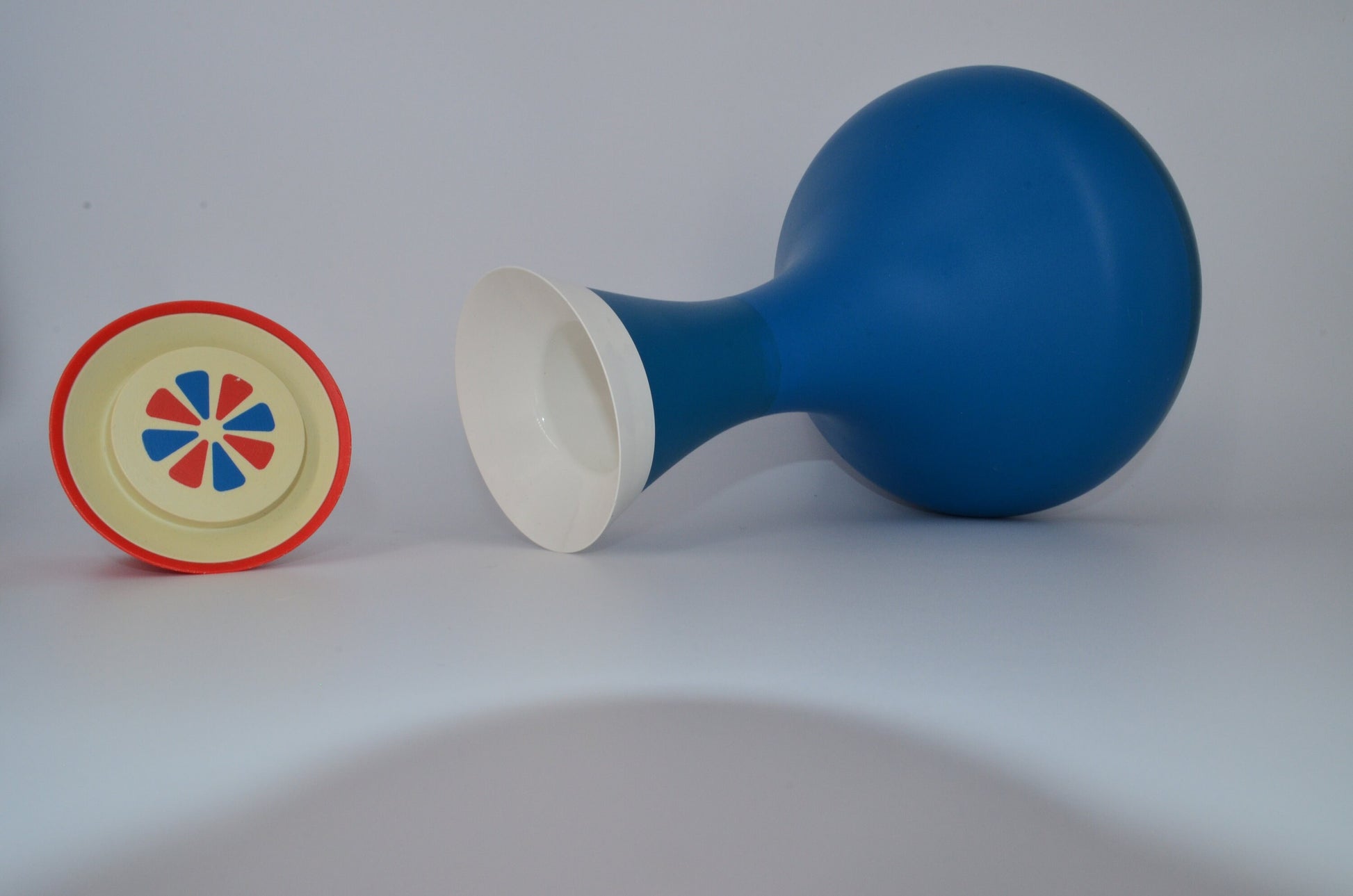 This shape is very space-age design, great addition to any atomic collection. Wonderful pop of color for the kitchen. Pairs nicely with several of our other kitchen items.