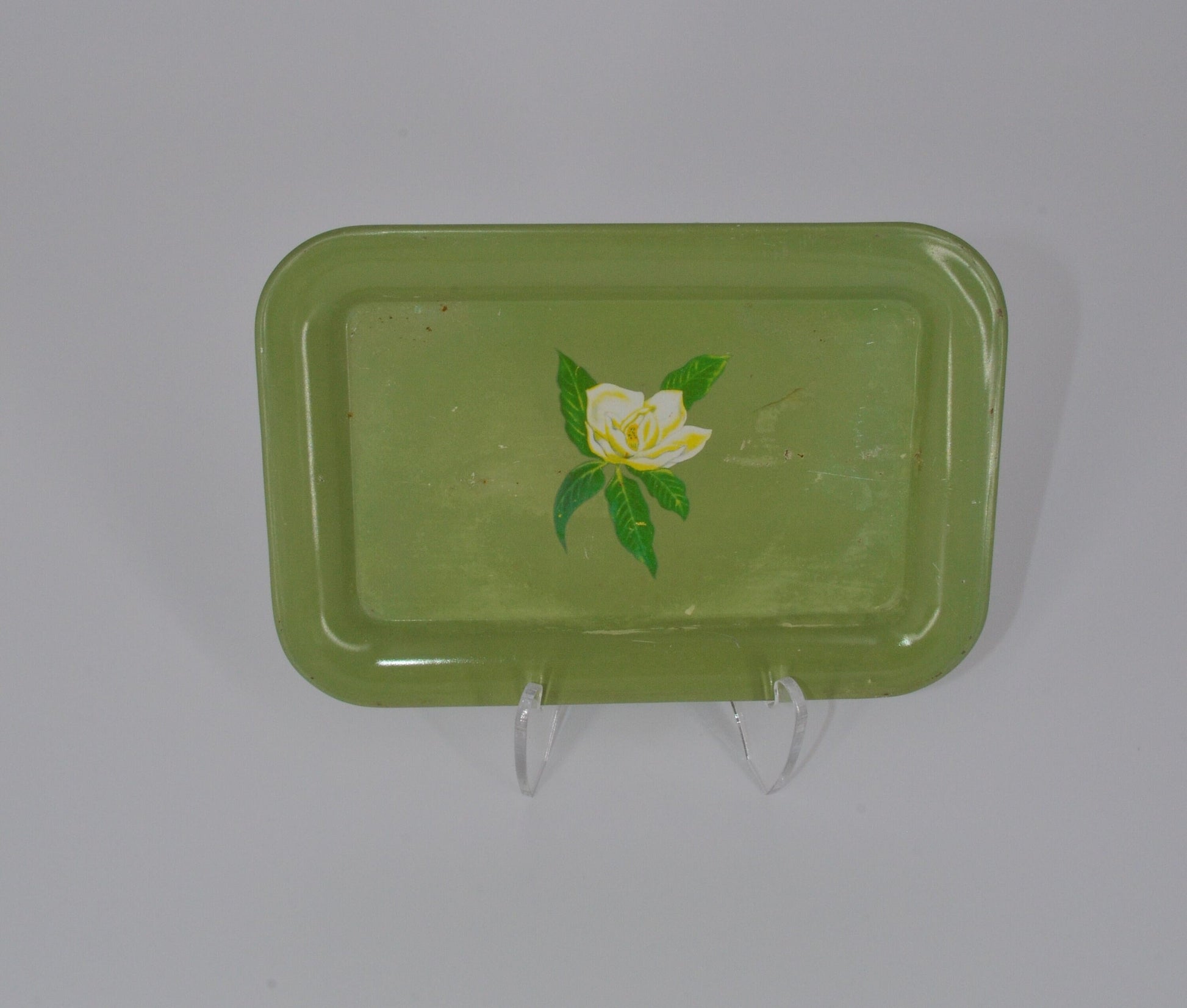 Vintage Green Floral Metal Tray - Mid Century Modern - Vanity Tray, Rolling Tray