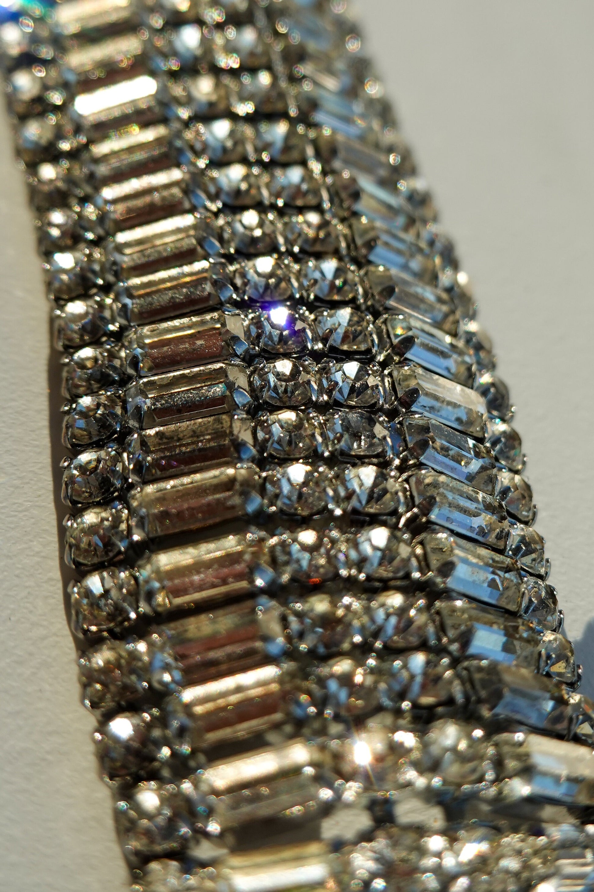 Vintage Weiss Jewelry - Silver and Clear Rhinestone Statement Bracelet - Baguette and Fancy Round Cut Rhinestone Cuff - Deco Style Jewelry