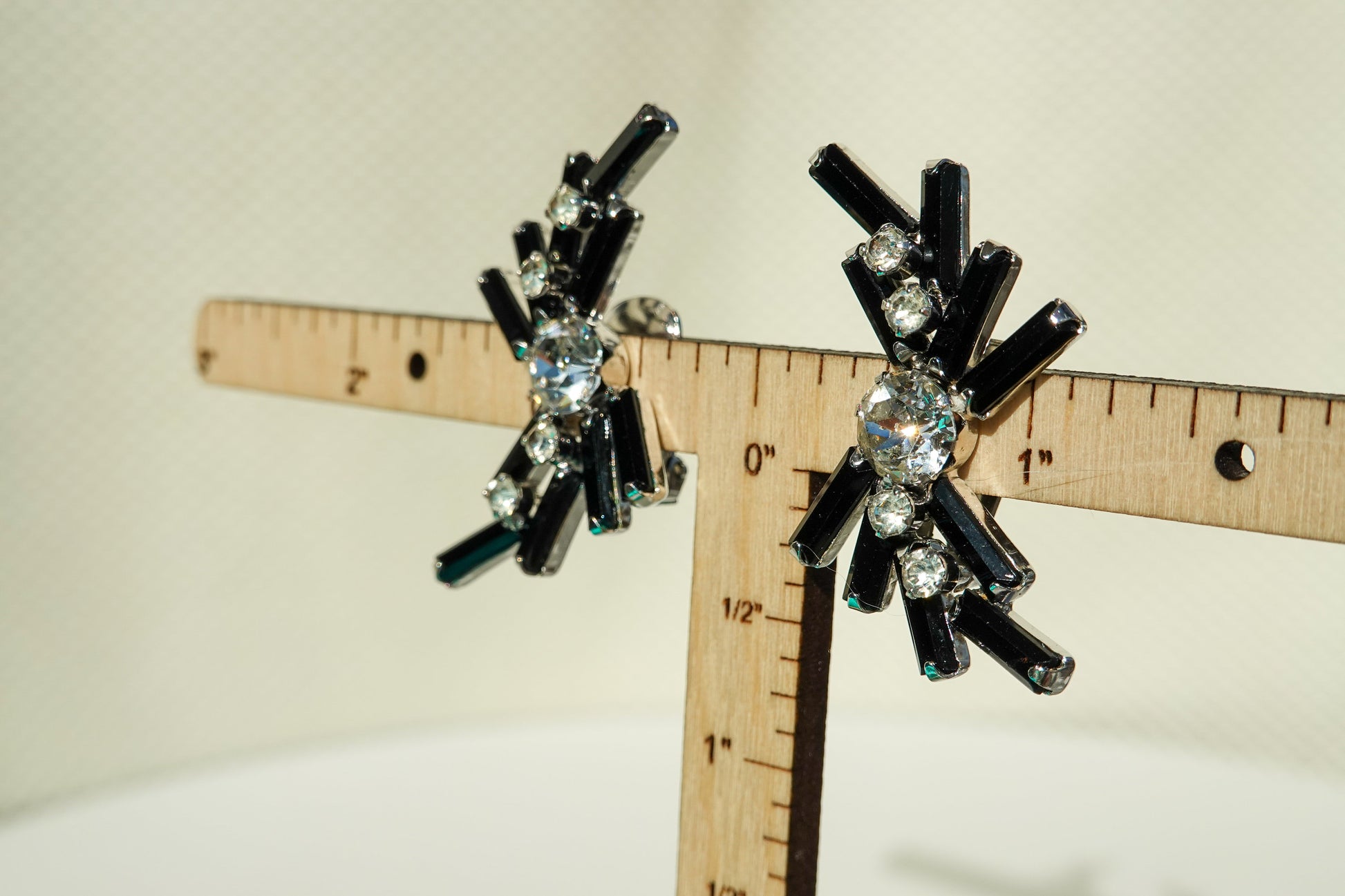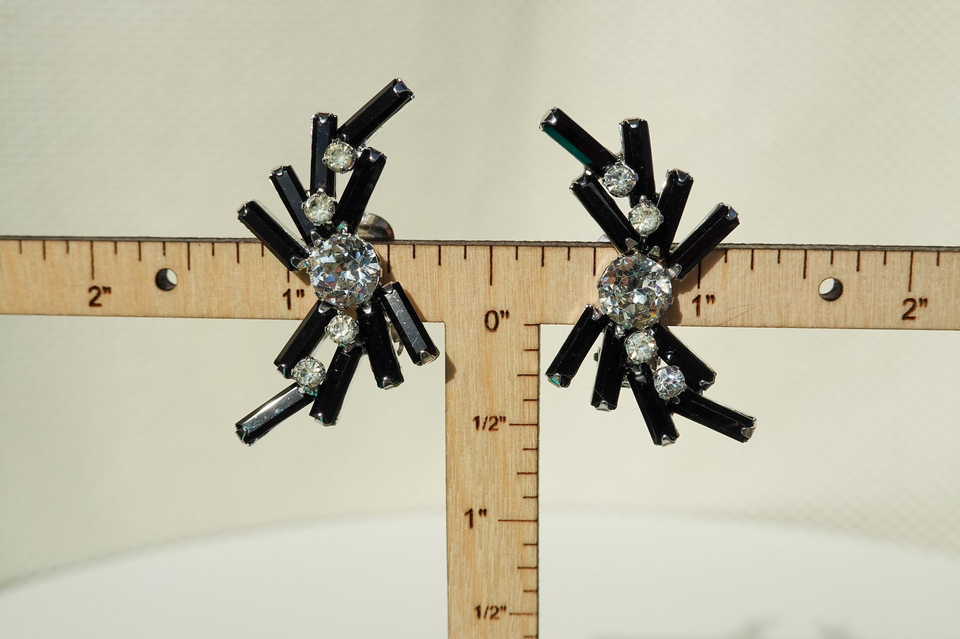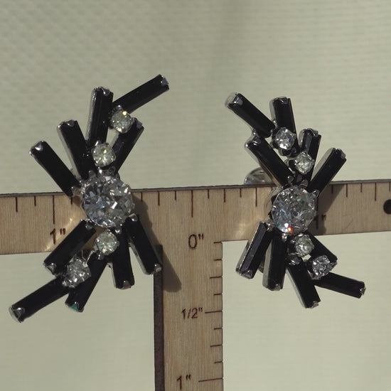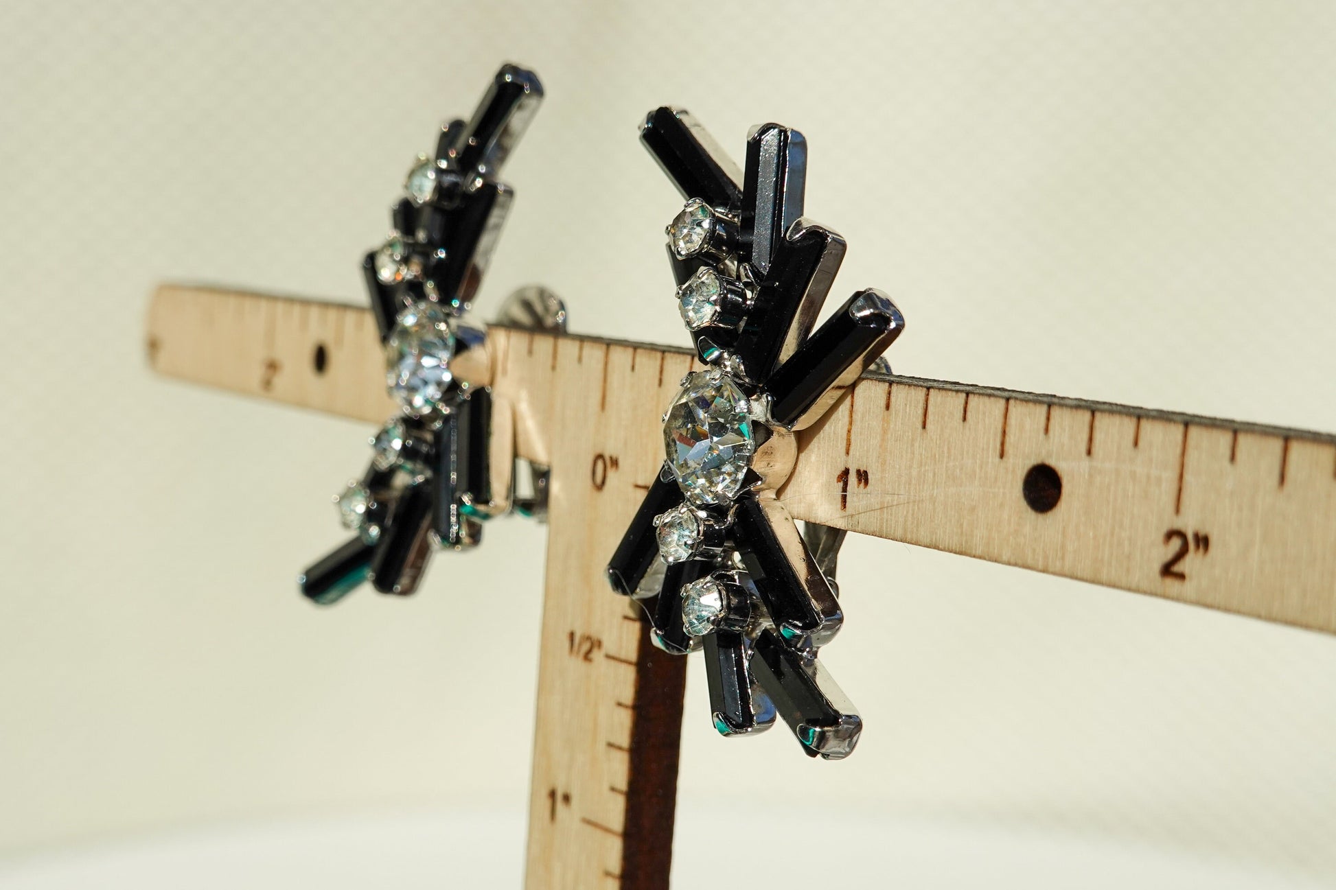 Vintage Weiss Rhinestone Climber Earrings - Black Baguette Rhinestones with Brilliant Cut Clear Rhinestones